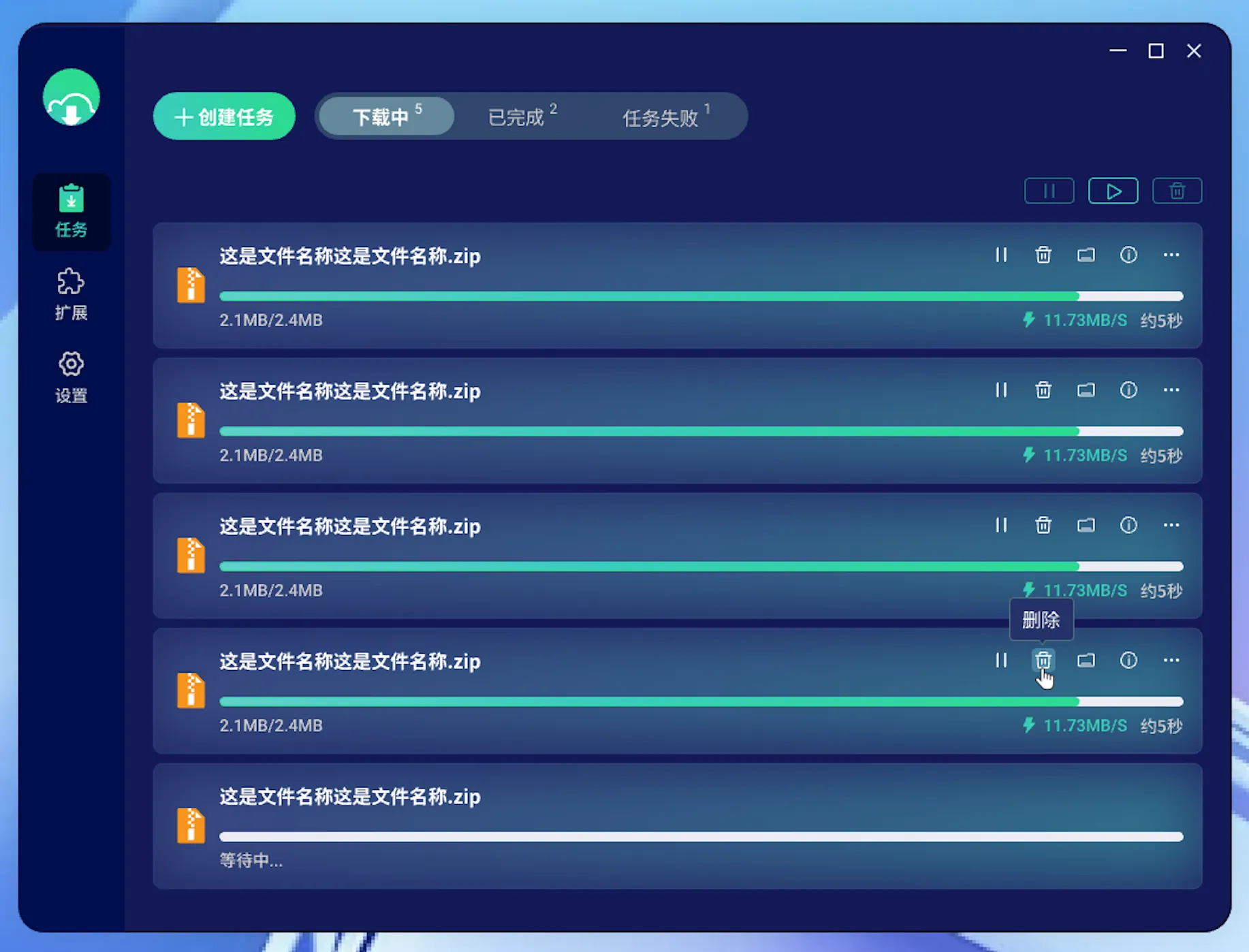 现在任务列表里能看到下载百分比和预计剩余时间了。移动端 UI 空间有限,所以目前只在桌面端显示: