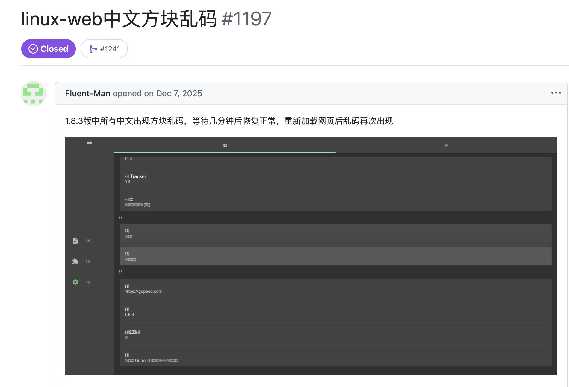 这也是社区用户反馈的,Web 版本打开会显示方块乱码: