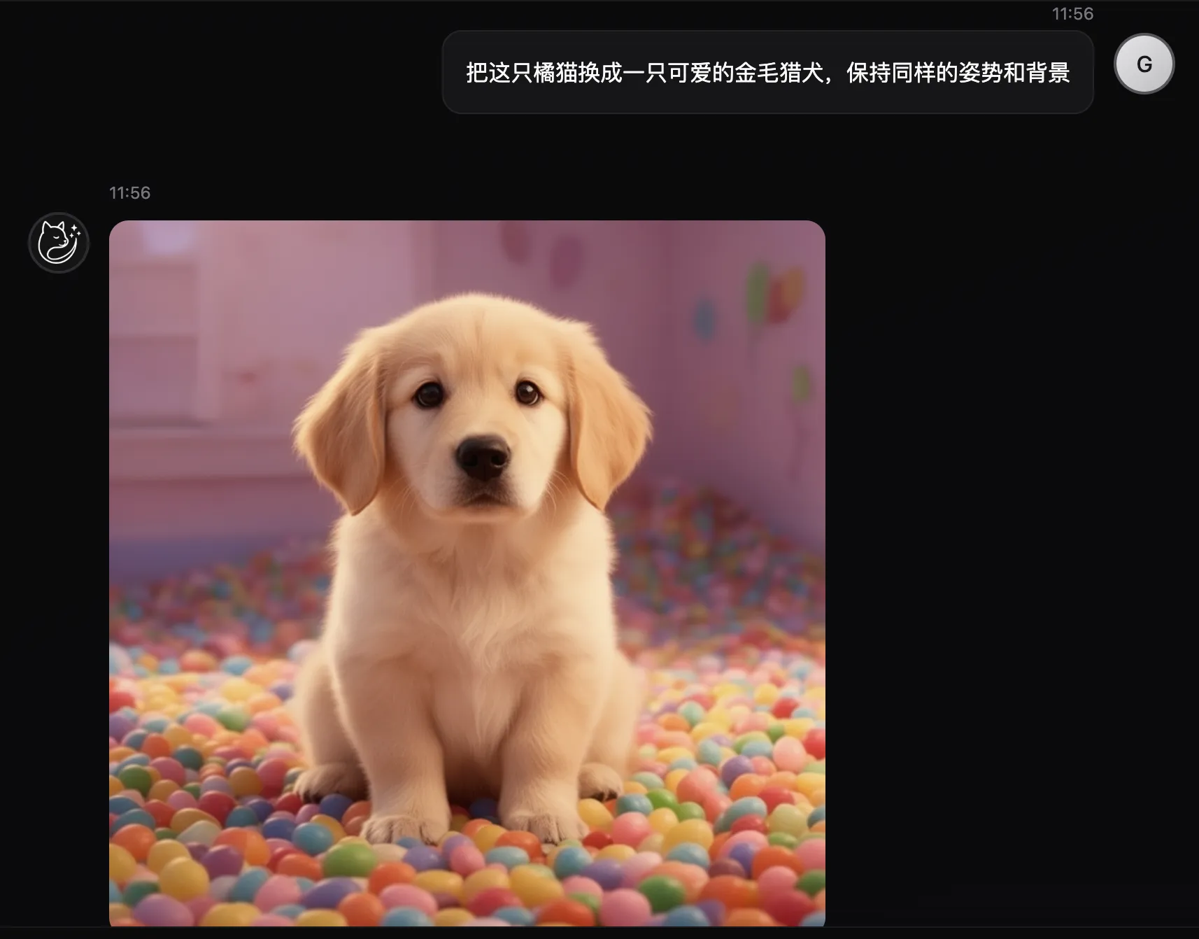 示例 2:把橘猫换成一只小狗