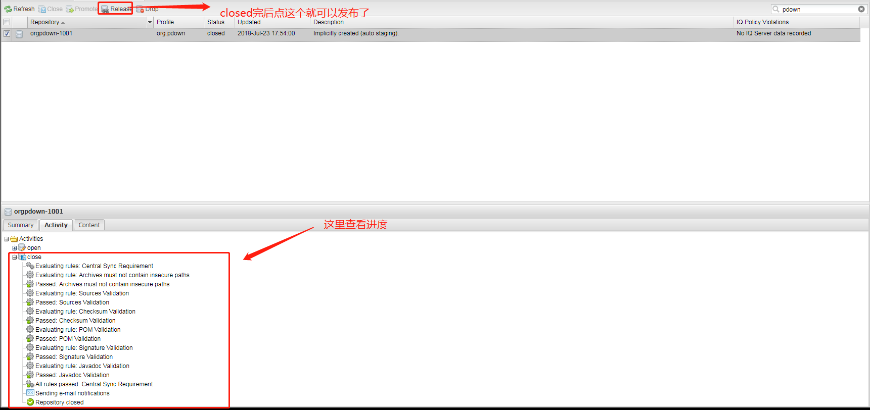 closed,然后再选中文件Release就发布完成了。然后等个几个小时就可以在中央仓库搜索到自己发布的 jar 包了。