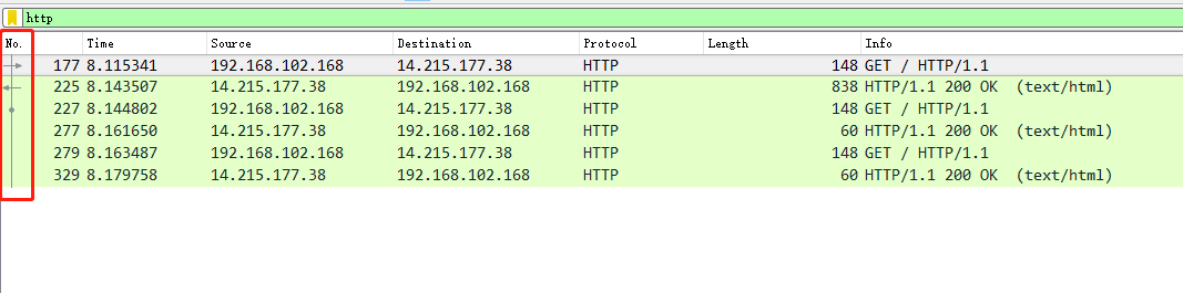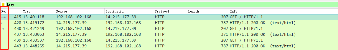 通过第一列的连线可以观察到是同一个 TCP 连接