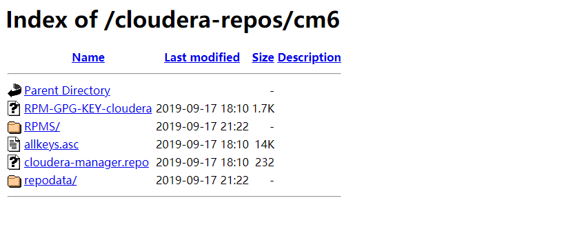 浏览器访问http://master.cdh/cloudera-repos/cm6,安装成功的话可以看到下图: