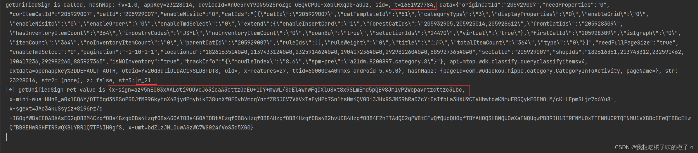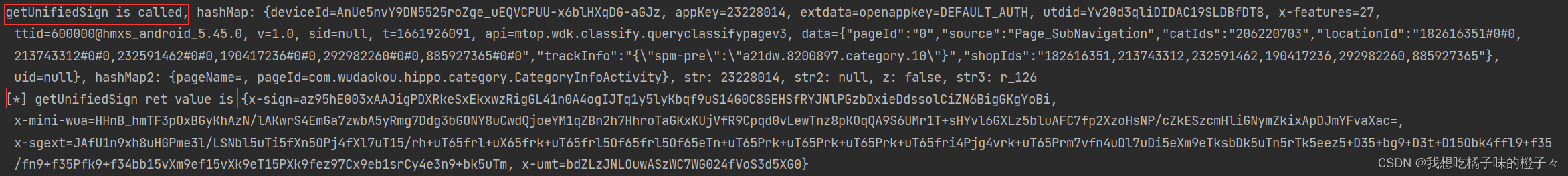 2.于此同时我们查看一下前面部分我们提到的 hook 这个 getUnifiedSign 函数,去查看一下结果