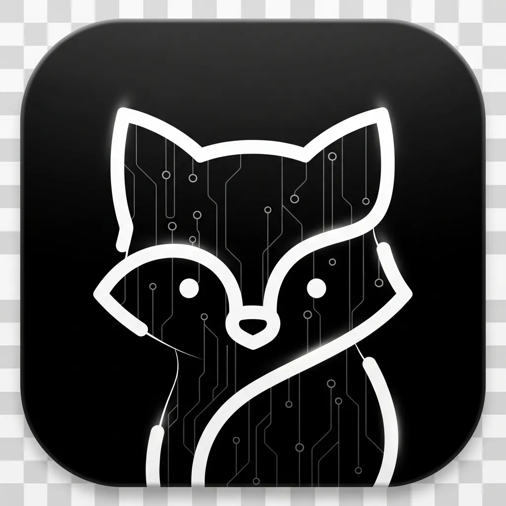 以 Type To Pixel 输入文本生成图像为主题,设计一个带有 AI 元素、有质感、现代化、科技感、极简风格的 APP logo。黑色背景打底,主体用白色呈现,形状为带圆角的方形。不要出现文字,主体是一只可爱小动物的极简轮廓,最终是透明背景。