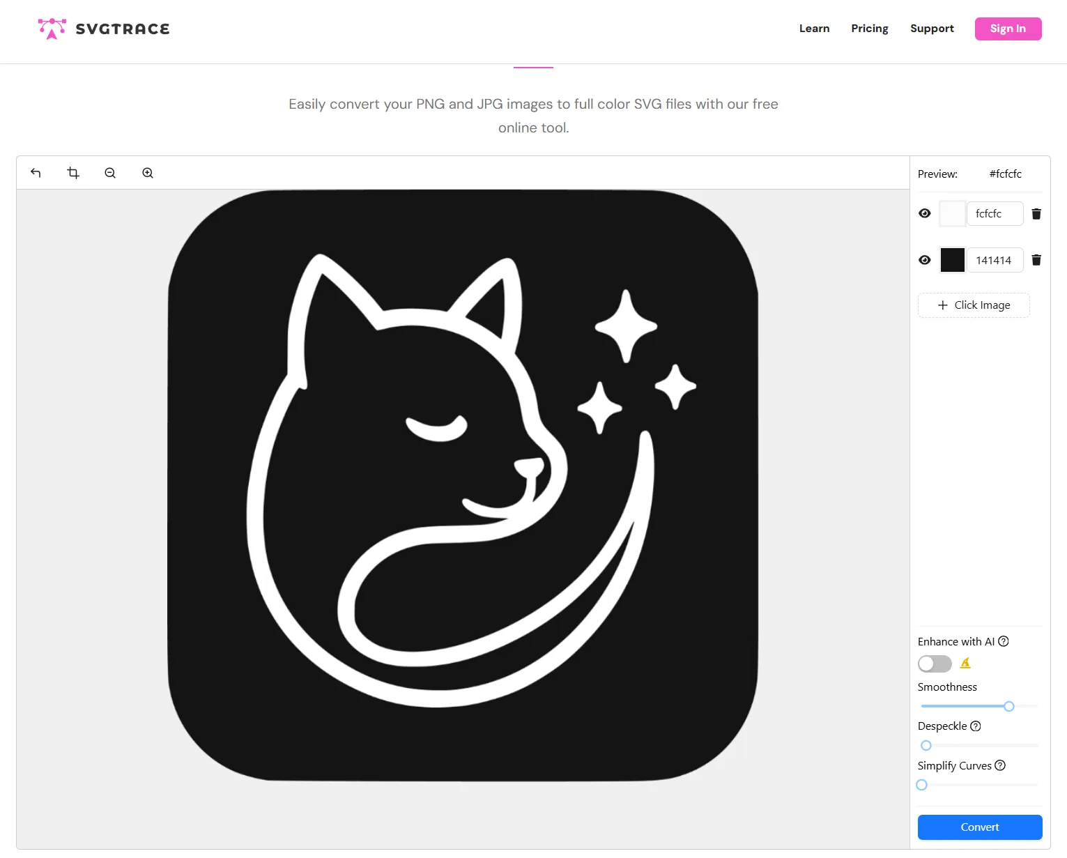 不用登录,免费转换,直接把 PNG 拖上去就能转成 SVG,效果还不错。这样 Logo 就能任意缩放而不失真了。