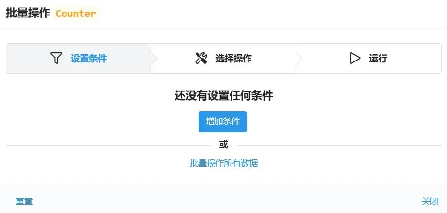 把之前表里只读的数据批量更新为无限制,选择所有数据,点击批量操作 -> 批量操作所有数据: