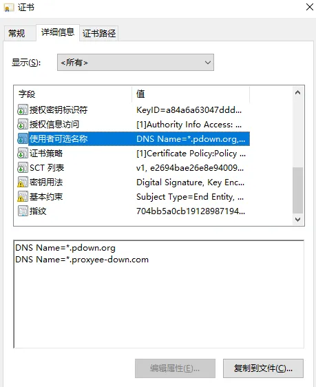 certbot certonly --cert-name pdown.org -d *.pdown.org,*.proxyee-down.com --manual --register-unsafely-without-email --preferred-challenges dns --server https://acme-v02.api.letsencrypt.org/directory这里签发了一个支持*.pdown.org和*.proxyee-down.com通配符域名的证书,注意如果是通配符域名证书需要指定--server https://acme-v02.api.letsencrypt.org/directory