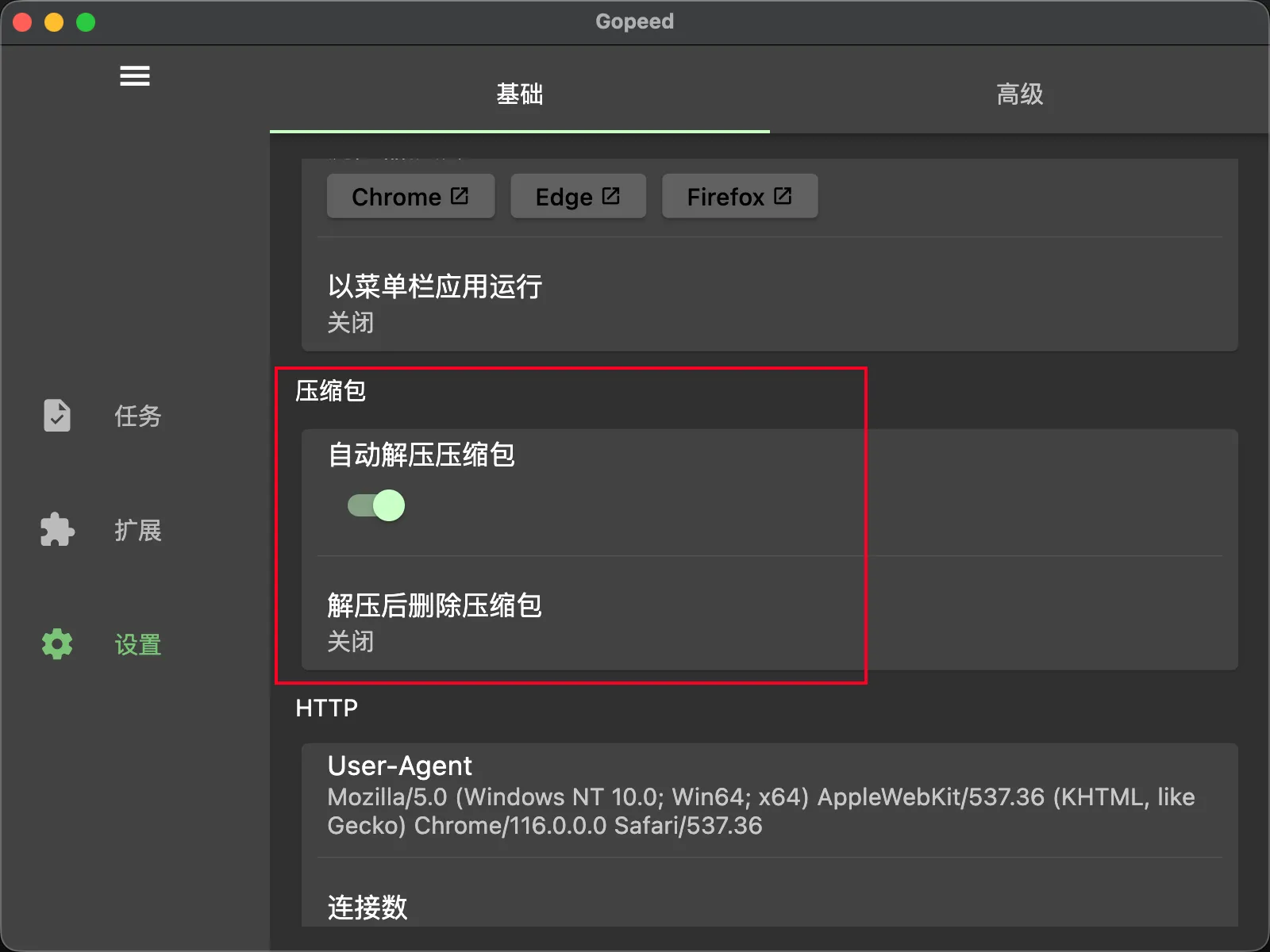 现在下载完成后可以自动解压了。为了避免多个任务同时解压把磁盘和 CPU 干爆,做了解压队列。还支持分卷压缩包,UI 上也能看到解压状态。功能默认关闭,需要的话可以在设置里打开: