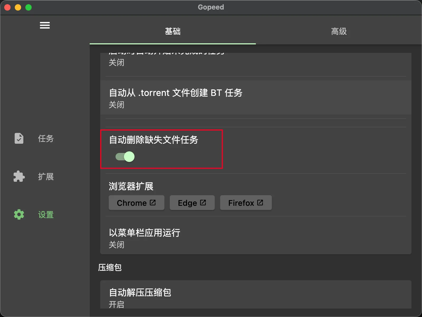 设置里可以配置任务自动清理了。开启后会自动清理文件被删除的任务,避免任务列表堆积无效任务: