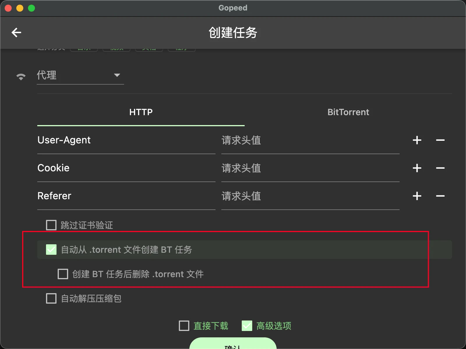 之前的版本会在下载.torrent文件后自动开启对应的 torrent 任务。收到社区用户反馈,不需要每次都自动开启,所以改成了可选项。可以在创建任务时选择是否自动从.torrent文件创建 torrent 任务: