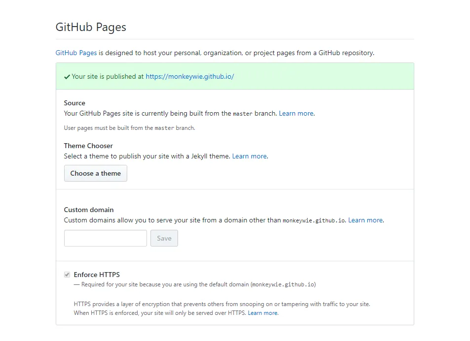 首先第一个想到能用到Github Actions的就是我的博客了,项目托管在https://github.com/monkeyWie/monkeywie.github.io,目前项目有两个分支,master分支用于存放 hexo 编译之后的静态文件,另一个hexo分支用于存放 hexo 项目环境和 markdown 文章,master分支通过Github Page配置之后可以通过monkeywie.github.io域名访问。