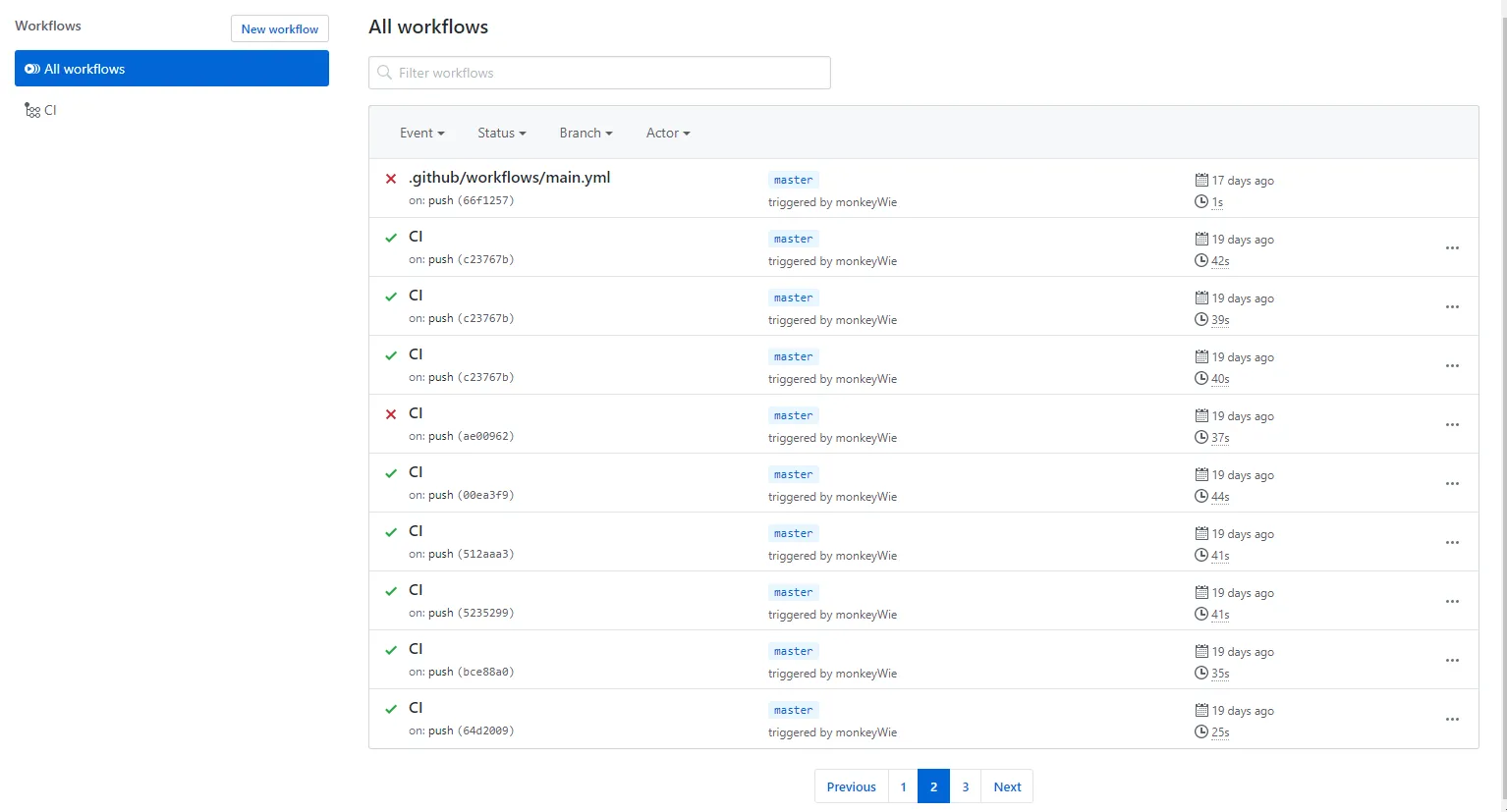 通过仓库中的Actions选项卡,可以看到项目中的 workflow 构建记录: