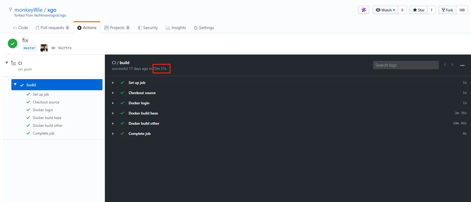 这样通过Github Actions就把构建镜像和部署时间的缩小了到了13分钟: