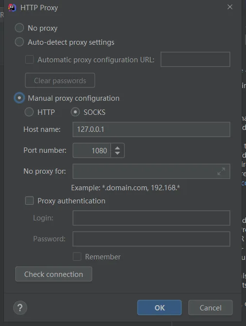 这里需要注意的是国内网络连接 jetbrains 服务器会比较慢,可能需要梯子,通过右上角的设置按钮进行代理设置: