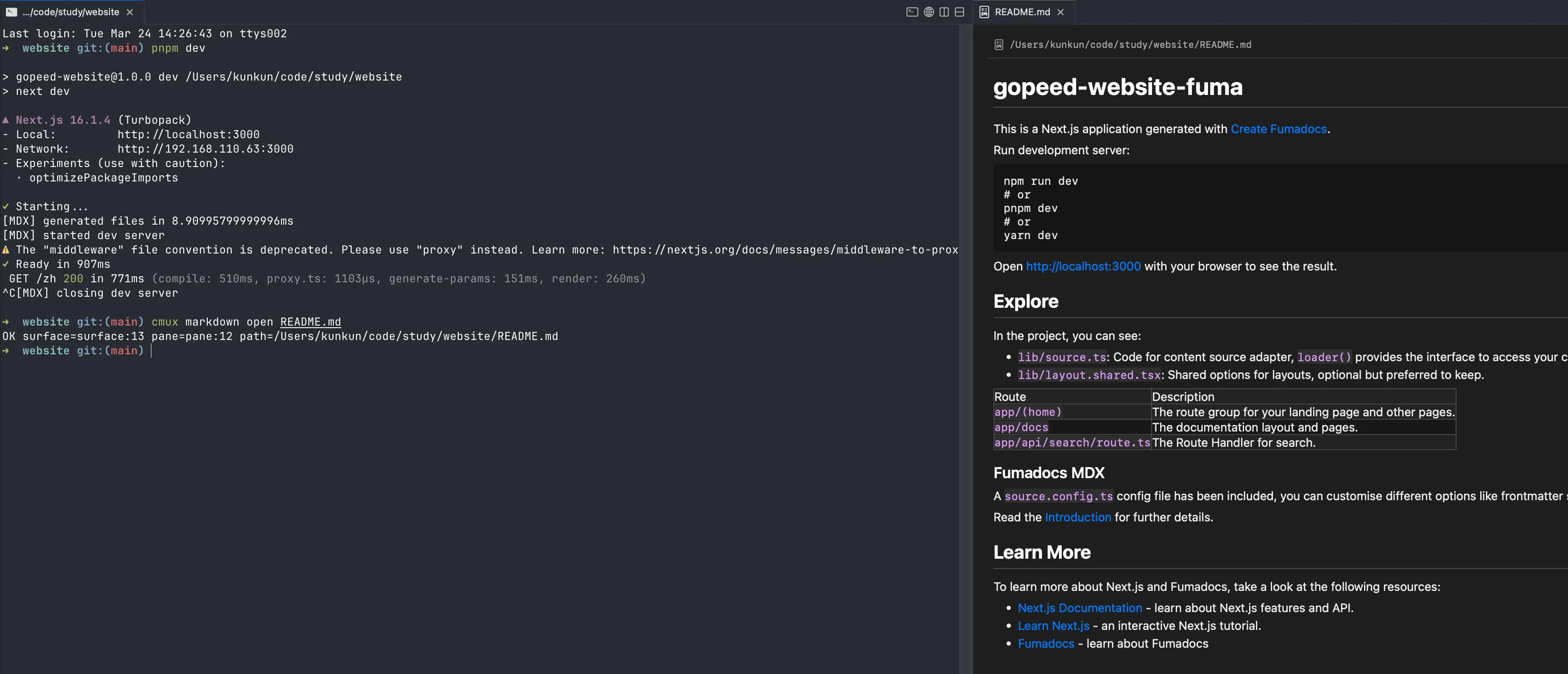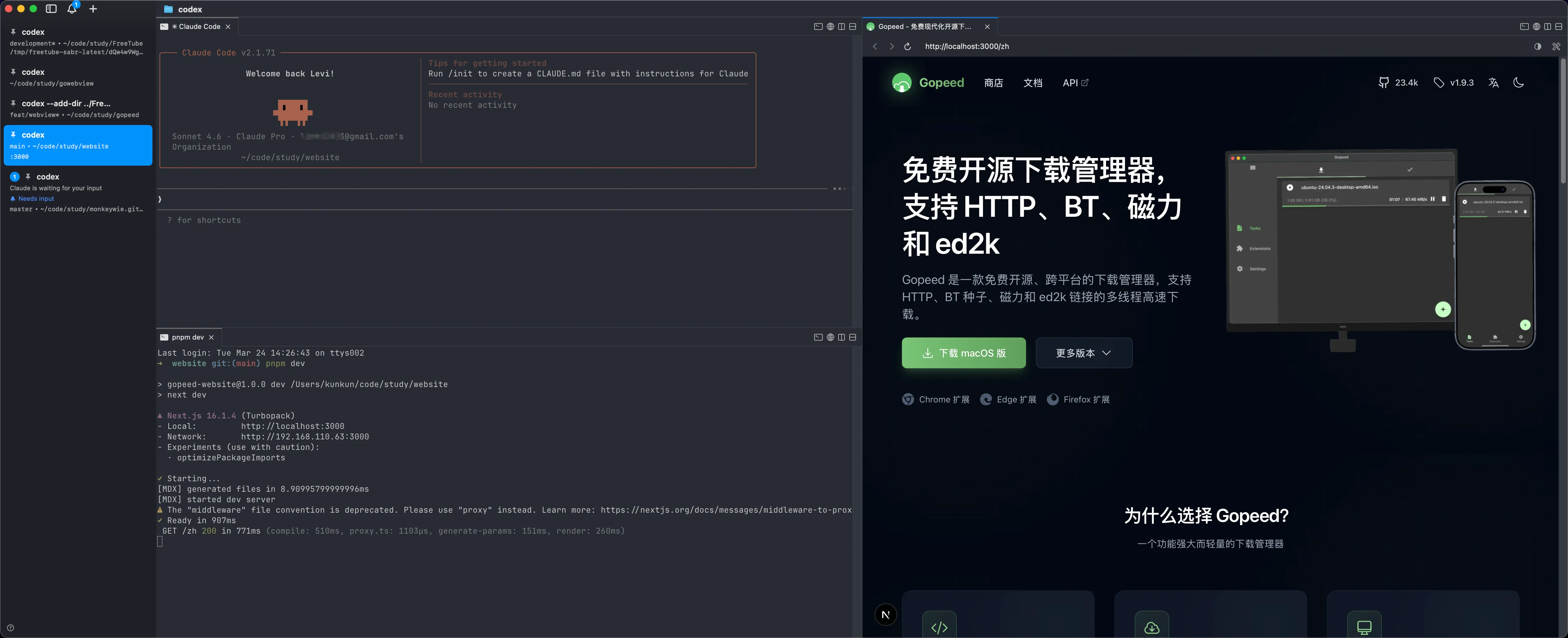 dev server,右边直接开一个浏览器,直接在终端里打通了调试链路。